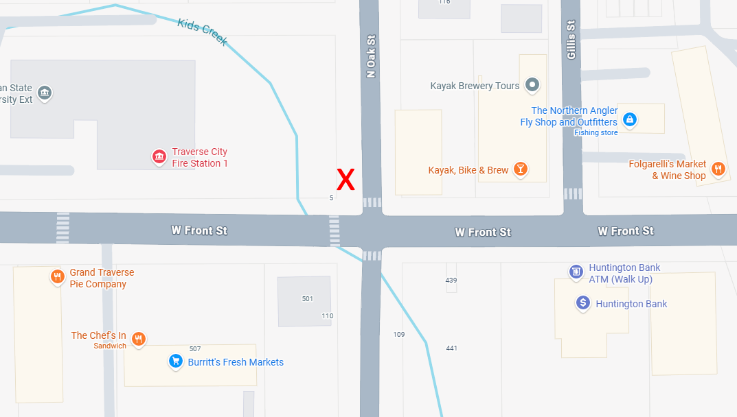 On Oak Street just north of Front Street in the booming Northern Michigan metropolis of Traverse City is a sign marking Fireman's Creek Trail: