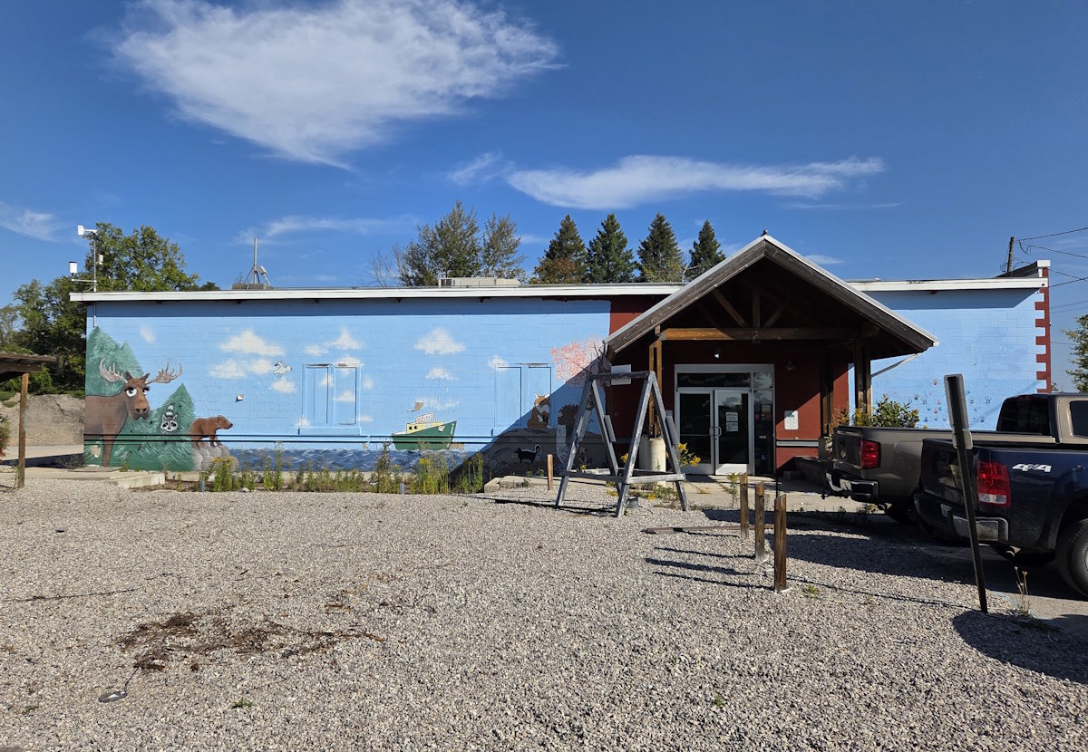 Only days ago, the happy moose and his friends decorated the cinder block wall, blocks now headed to a landfill.